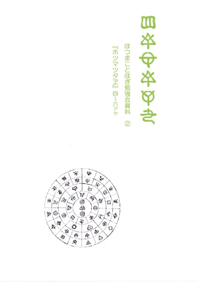 ホツマツタヱ シェア会 現地・ZOOMで使用するテキストです。 ヲシテ文字で書かれた原文と 紐解きの文で構成されています。 テキスト目次 ♢縄文文字ヲシテ四十八音韻図表・あわうた ♢ほつまことほぎ ~はじめに~ ♢キツのナとホムシさるアヤ 1アヤ ♢アメナナヨ・トコミキのアヤ 2アヤ ♢ヒ・ヒメ、ミ・ヲうむトノのアヤ 3アヤ