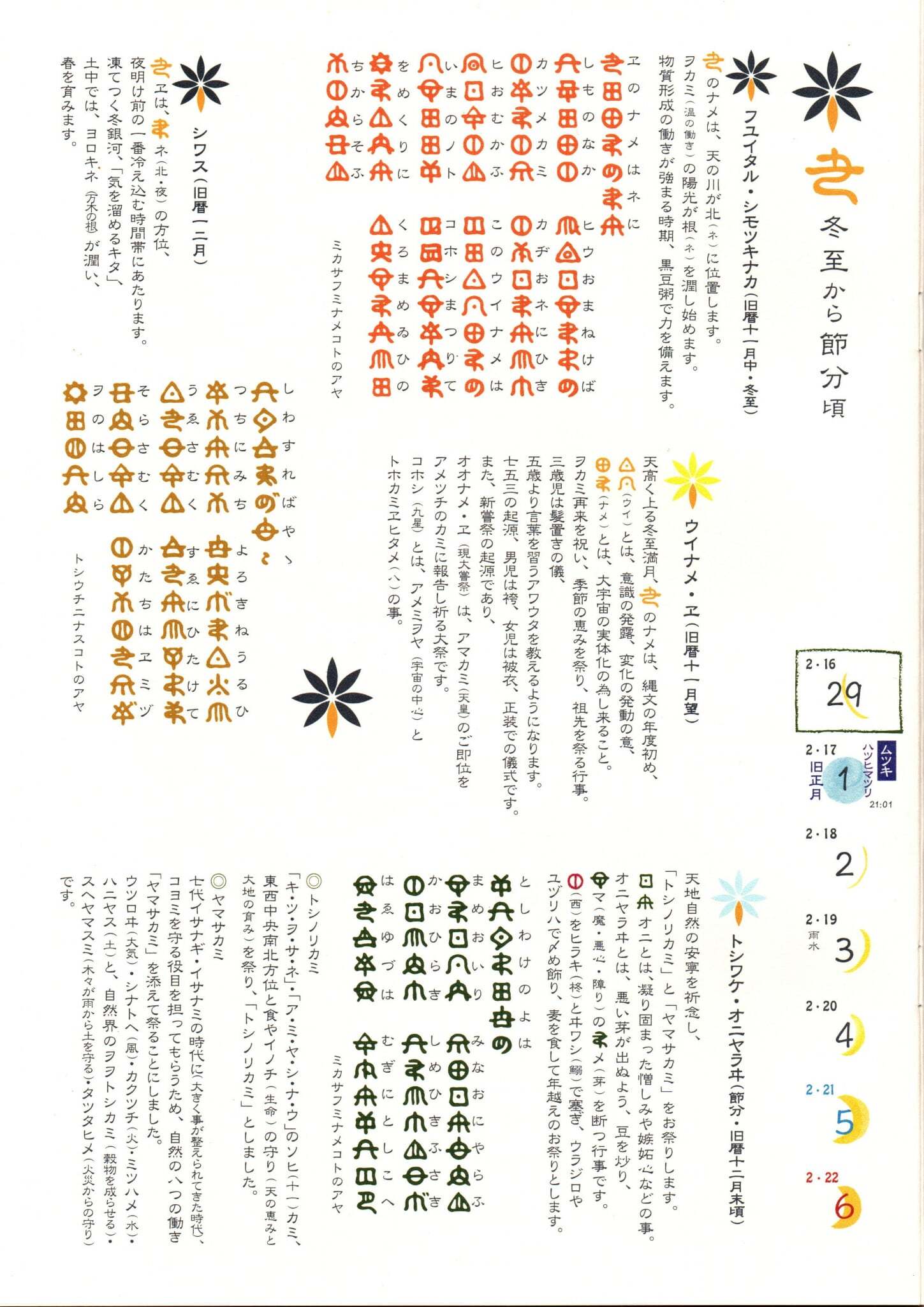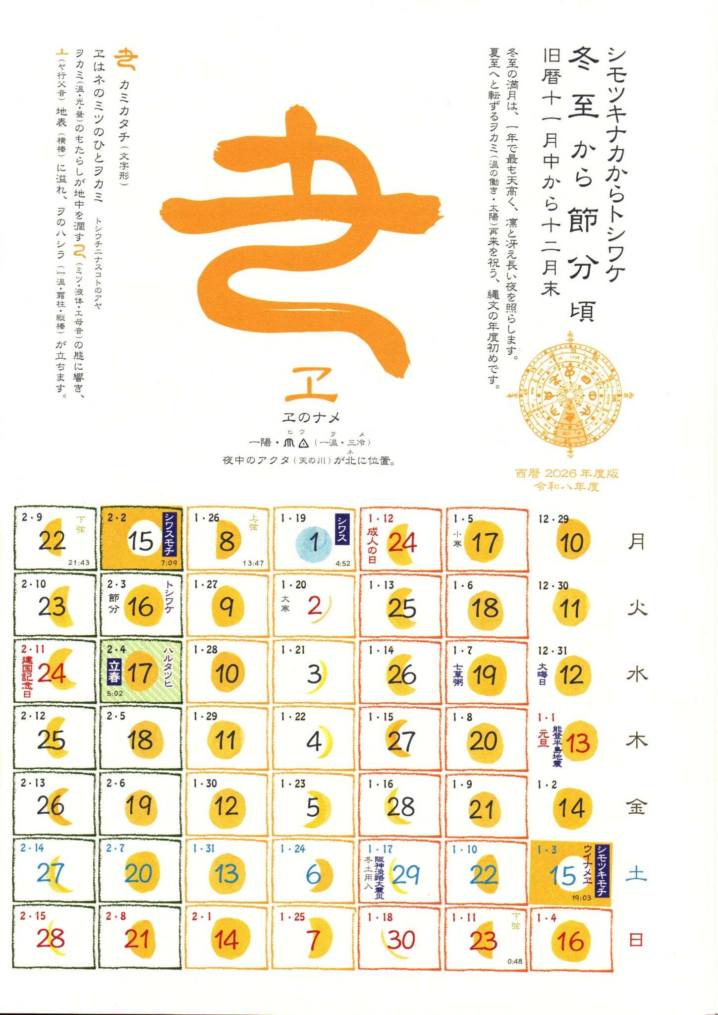 縄文カレンダーは、ヲシテ文献に記された古代日本の年中行事を今の暦に反映させた太陰太陽暦(旧暦・和暦)で、